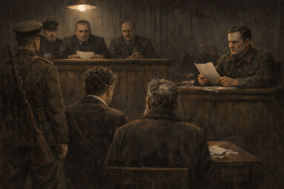 Он вспоминал события последнего месяца и вдруг впервые отчётливо осознал — он только деталь ржавого механизма. Он нужен лишь для того, чтобы убийство стало законным. Каждое его слово, каждая попытка возразить — лишь лёгкий щелчок шестерёнки, которая всё равно раздавит того, кто оказался под прессом. Завтра снова будет заседание. Приведут человека. И он будет его защищать: возражать, говорить, доказывать, просить… не в силах изменить ничего.